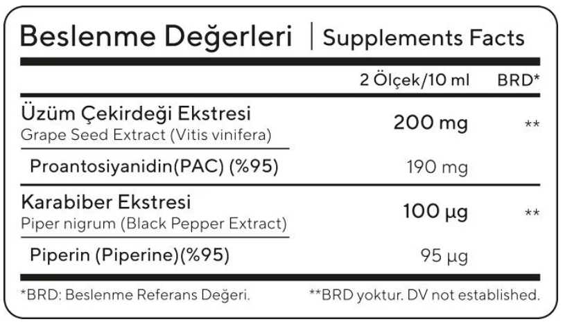 Novlex® Üzüm Çekirdeği (Black Grape Seed) ve Piperin Ekstraktı (Ekstresi) İçeren Sıvı Takviye Edici Gıda 250 ml